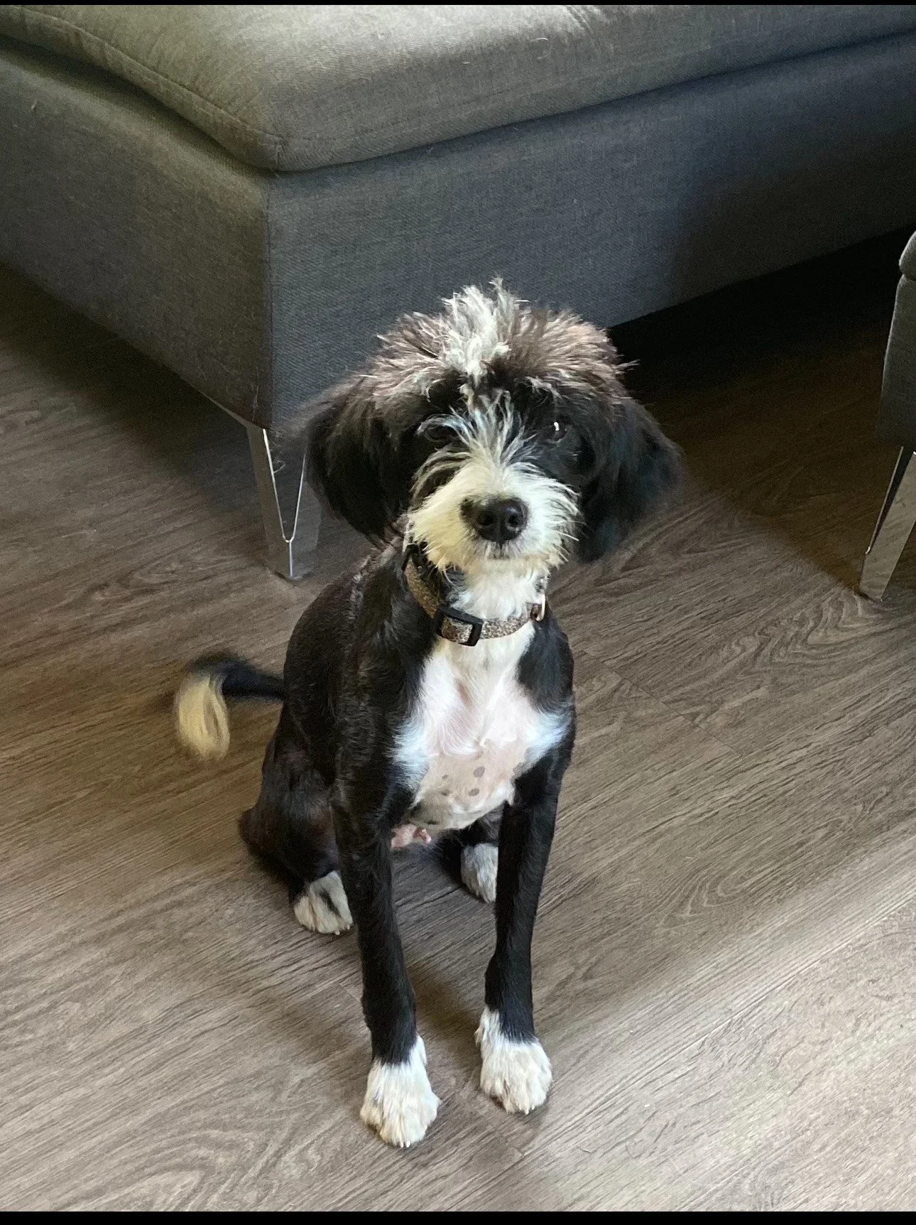 Chrissy is one of our own! Kept from previous litter. She is a Mini Bernedoodle. She is only 20 lbs again which makes her ideal for breeding Micro puppies. Chrissy is a fun playful girl whos favorite past time is cuddling.